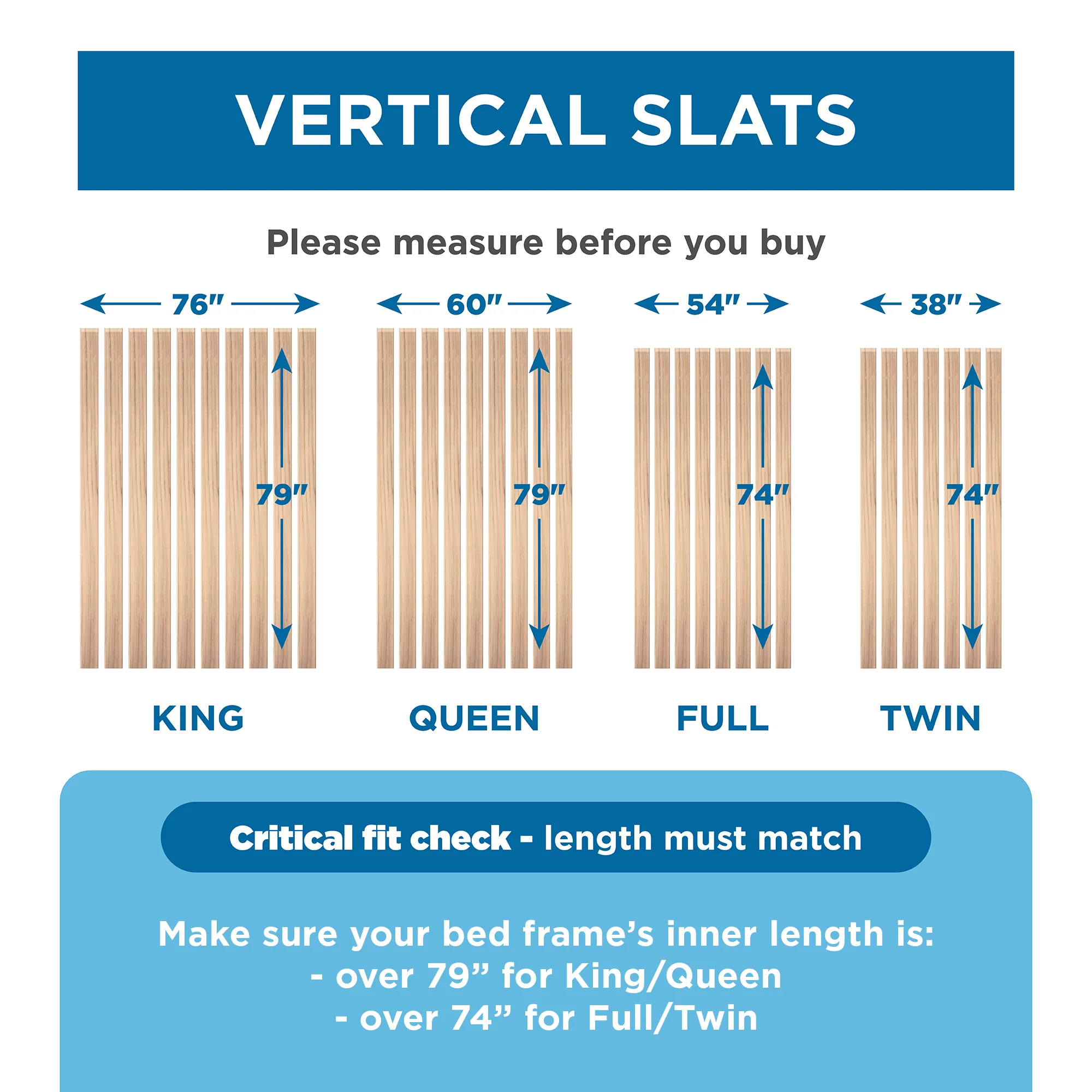 SlatSure Vertical Bed Slats – Heavy Duty Wooden Replacement Slats for Bed Frame & Mattress Support—